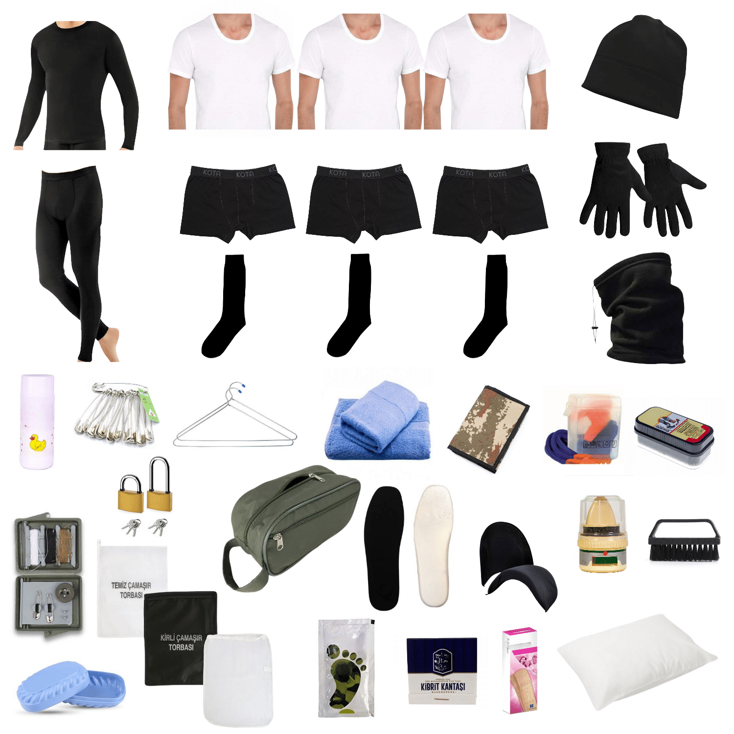 3’lü Denizci Kışlık Uzun Dönem Askeri Seti, zorlu kış koşullarında askerlerin ihtiyaçları düşünülerek tasarlanmıştır. Set içinde 3 adet rahat ve sıcak tutan denizci askerler için beyaz fanila ve don (boxer), soğuktan koruyan 3 çift siyah çorap bulunur. Ayakkabı veya bot bakımı için bot boyası, parlatıcı sünger ve fırça ile ayak sağlığını koruyan pudra, bot vatkası, tabanlık ve güvenlik için bot kilidi mevcuttur. Kişisel eşyaların güvenliği için dolap veya valiz kilidi, boyuna asmalı asker cüzdanı ve kıyafetleriniz için metal dolap askıları yer alır. Pratik ihtiyaçlar için dikiş seti, tıraş çantası, sabun kutusu, çamaşır torbası ve filesi, kulak tıkacı, ayak koku giderici, yara bandı ve çengelli iğneler düşünülmüştür. Ayrıca kirli çamaşırlar için kirli çamaşır torbası ve temiz kıyafetler için ise temiz çamaşır torbası yer almaktadır. Hijyen ve konfor için 2’li banyo havlu seti, beyaz yastık kılıfı ve tıraş sonrası yaralar için kibrit kan taşı içerir. Soğuk hava koşullarına karşı siyah termal alt içlik, üst içlik, polar bere, boyunluk ve eldiven de setin parçaları arasındadır. 3’lü Denizci Kışlık Bedelli Askeri Seti ise, bedelli askerler için özel olarak hazırlanmış, benzer içeriklere sahip bir settir. Her iki set de askerlerin temel ihtiyaçlarını karşılamak ve kış aylarında maksimum konfor sağlamak için tasarlanmıştır.